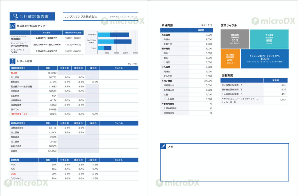 期的バリエーションなどの企業の価値の可視化が必要な際のレポートを短納期で提供可能です。